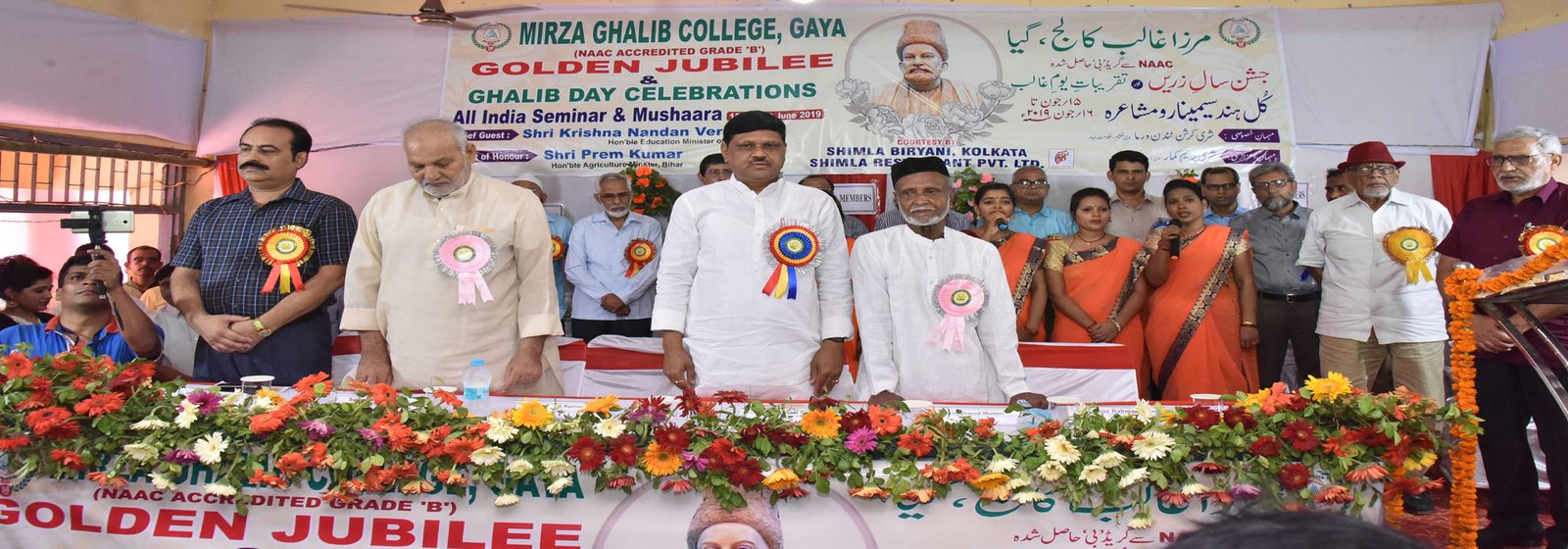 Mr. Shabi A. Shamsi presenting bouquet to Prof. Rajendra Prasad, VC, Magadh University, Bodhgaya
