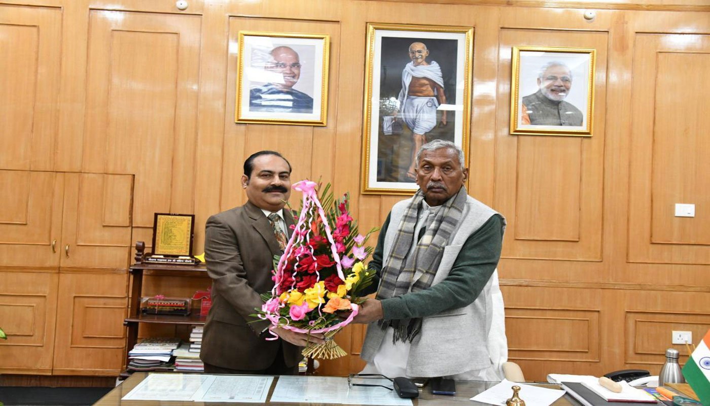 Secretary Mr. Shabi A Shamsi presenting bouquet to His Excellency Shri Phagu Chauhan, Honourable Governor of Bihar at Raj Bhawan Patna on 05 February 2020.