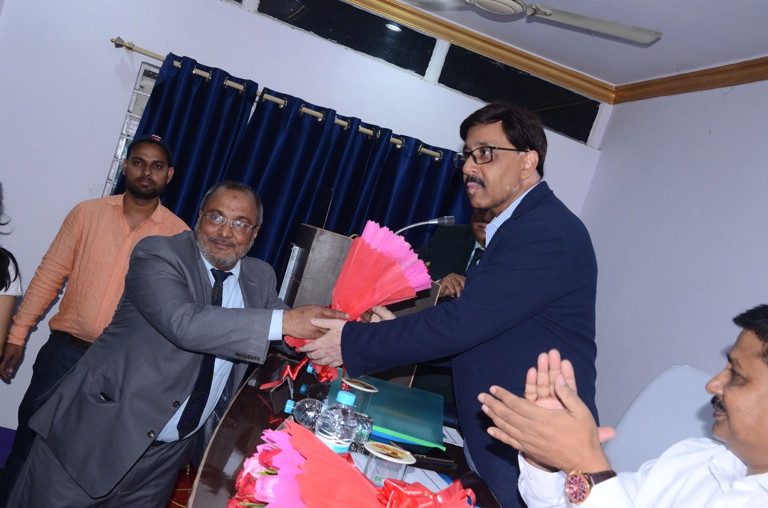 Mr. Shabi A. Shamsi presenting bouquet to Prof. Rajendra Prasad, VC, Magadh University, Bodhgaya