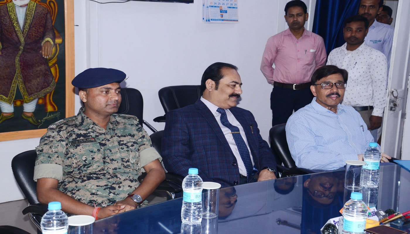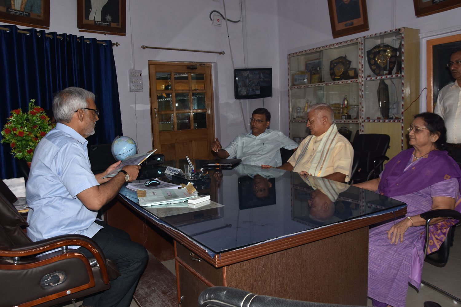 Meeting in pricinpal chamber (Left) Mr. Moti Lal, Deputy Commandant, CRPF, Mr. Shabi Shamsi, Secretary, Mirza Ghalib College, Mr. Nisheet Kumar, Senior Commandant CRPF on 03 March 2020.